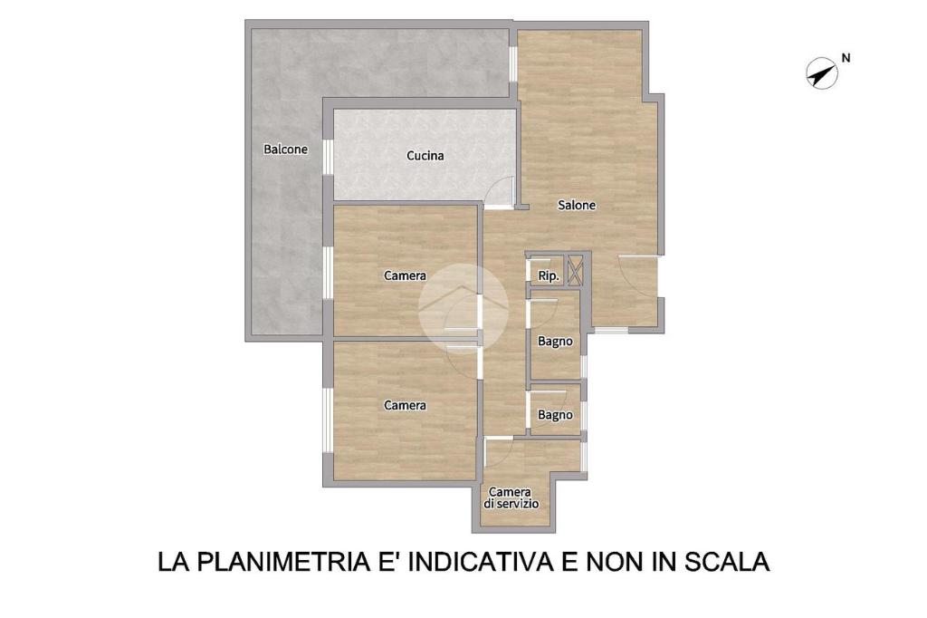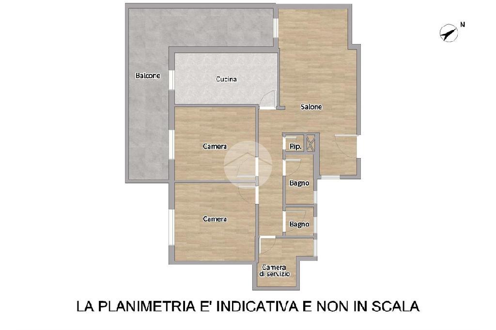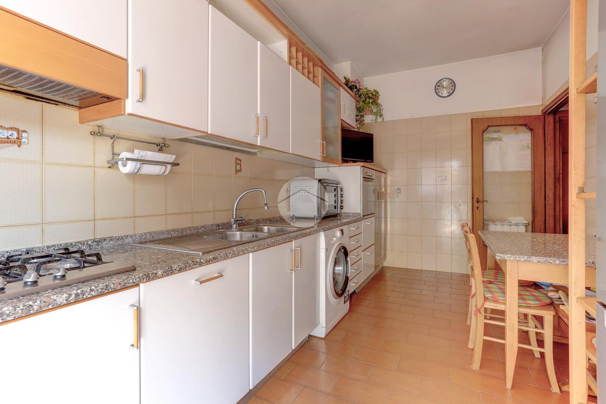 La disposizione interna comprende inoltre due bagni, una camera di servizio e un pratico ripostiglio che contribuisce a mantenere ordine e funzionalità.