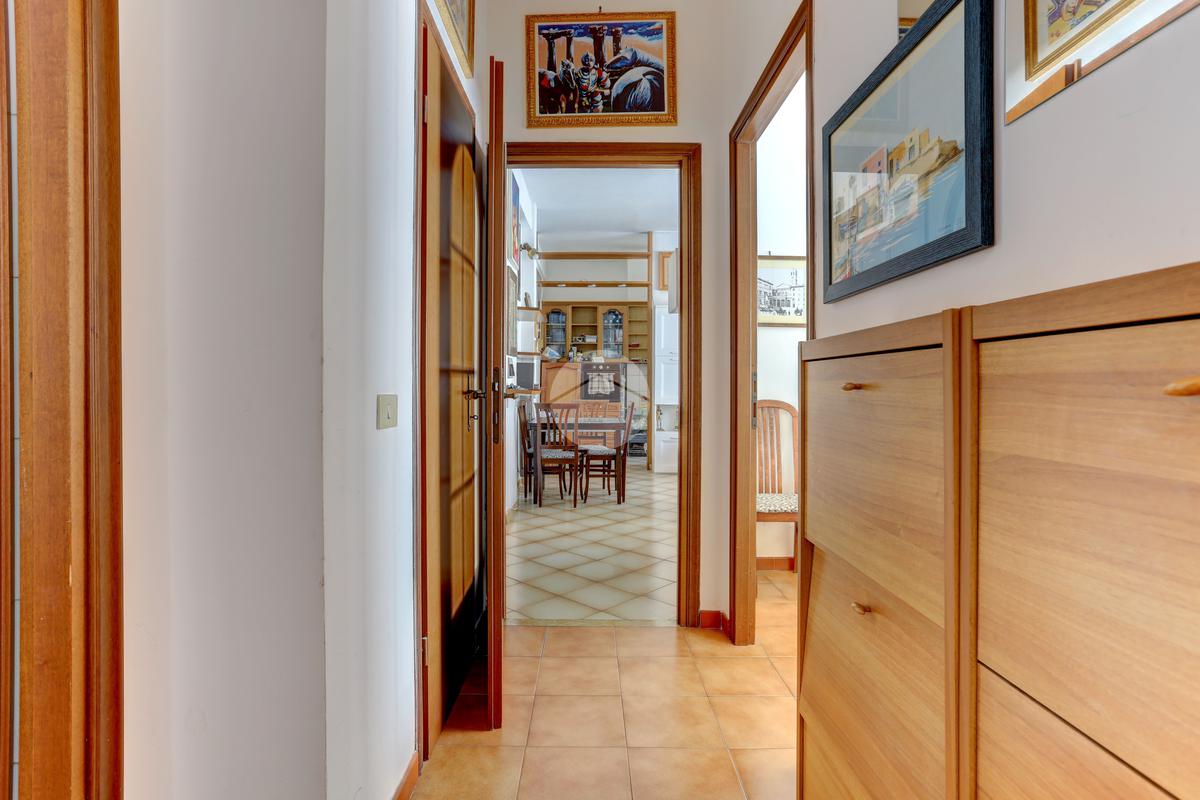 Il balcone diventa il punto di fuga verso l’esterno: vi si accede dal salone e da una delle due camere da letto, offrendo continuità tra gli ambienti e uno spazio perfetto per ritagliarsi attimi di tranquillità.