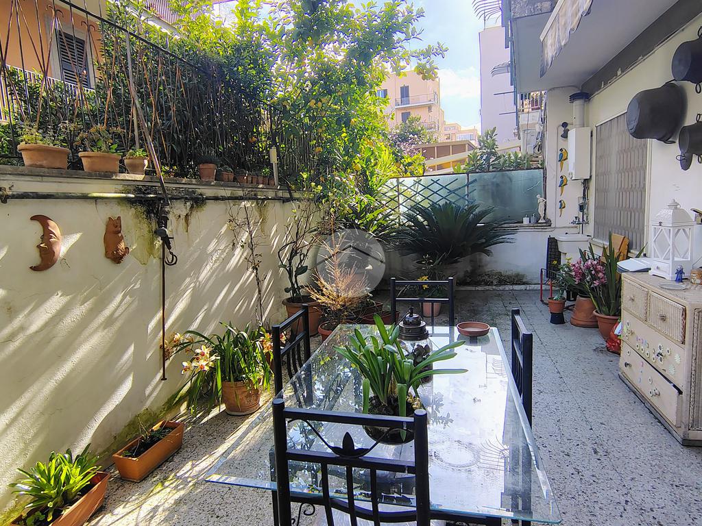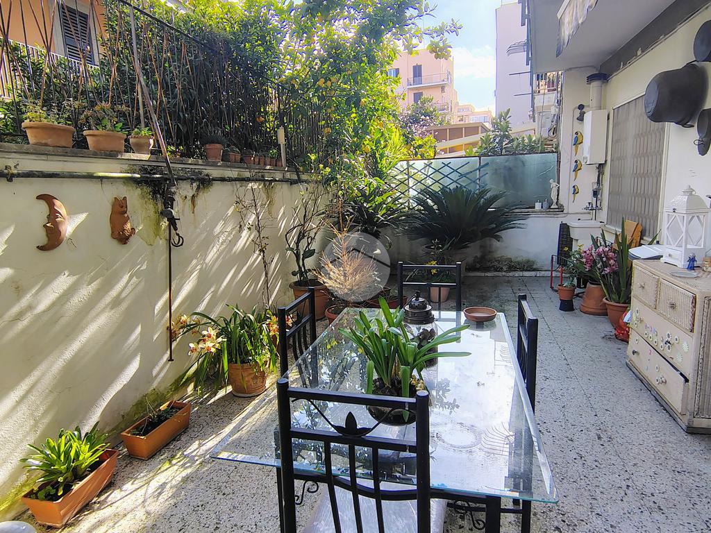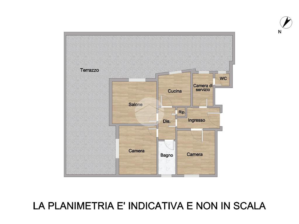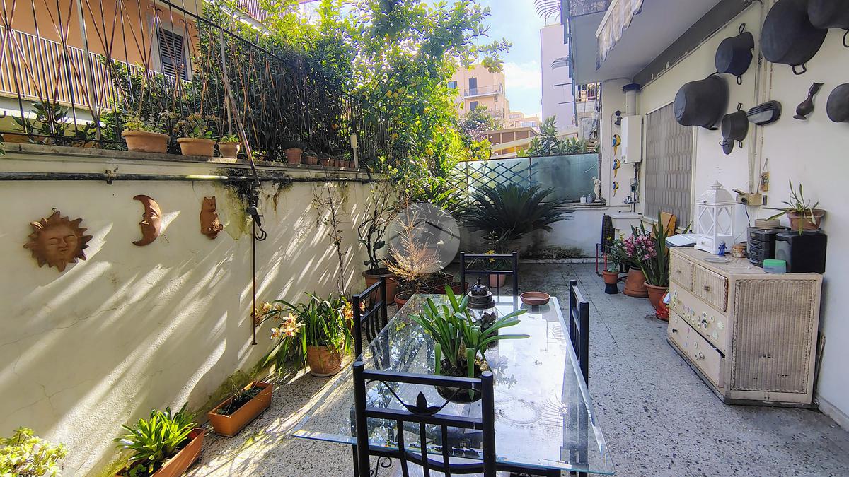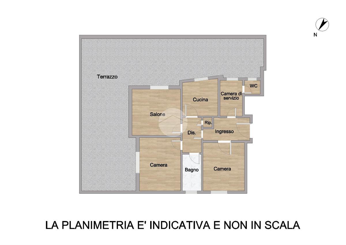 Sulla destra troviamo il salone e la cucina abitabile, entrambi con accesso diretto al vero protagonista della casa: un terrazzo di circa 130 mq, ampio e molto ricercato in zona, ideale per vivere l’esterno come prolungamento degli interni.