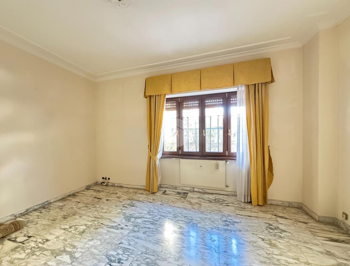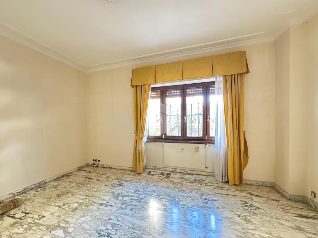 Sulla sinistra si sviluppa la zona notte, composta da due camere da letto luminose. Completano la proprietà una camera di servizio con bagno dedicato e un secondo bagno finestrato.